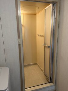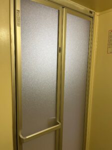 続きまして、浴室ドアを折戸に交換です。
