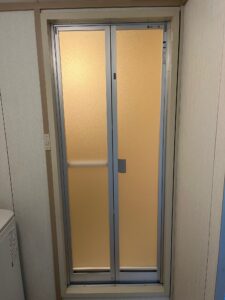 続きまして、浴室ドアを折戸に交換です。