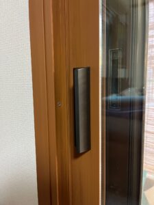 かなり大きな掃出し窓は、開閉がしやすいように、引手を付けたり、